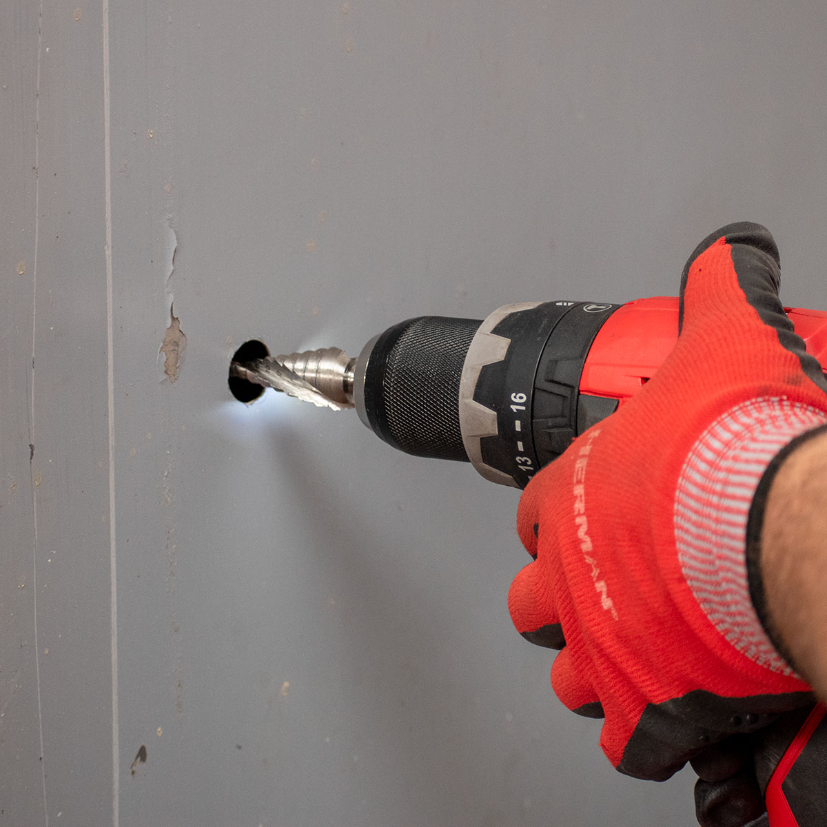 - Ideal zum präzisen Vergrößern bereits gebohrter Löcher und zum Bohren in dünnwandige Materialien, z. für den Einbau von Kabelverschraubungen von Schaltschränken, Rohrdurchführungen und Installation, in der Automobilindustrie, Wartung, Reparatur usw.