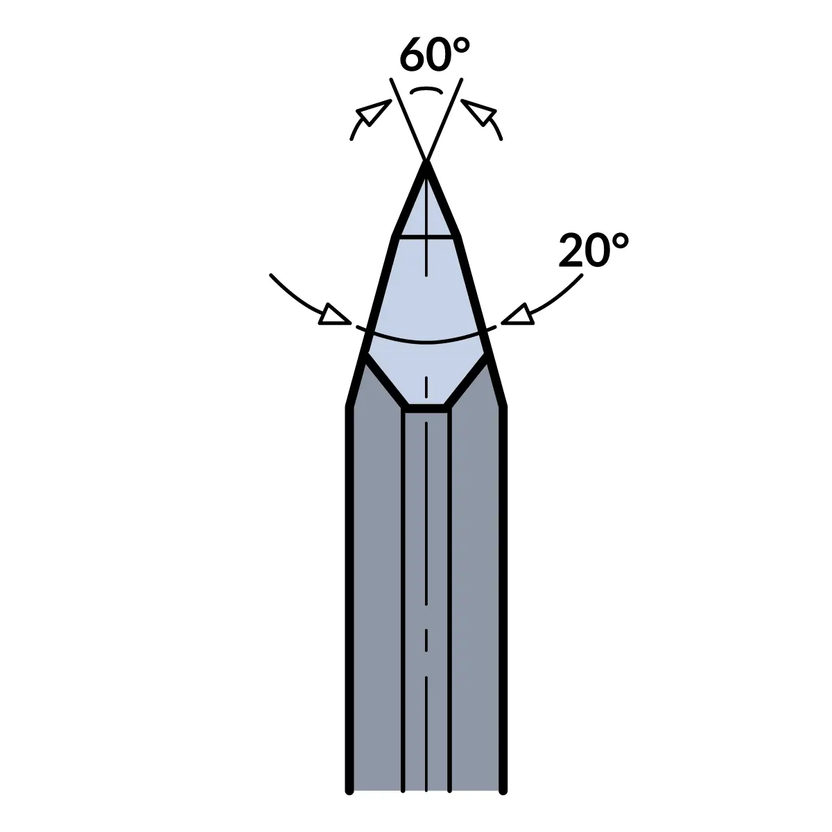 - Halten Sie durch regelmäßiges Schärfen zumindest annähernd die Geometrie der Winkel des Arbeitsteils des Meißels ein. So erreichen Sie eine gleichbleibend hohe Produktivität bei geringerem Aufwand für Maschine und Bediener